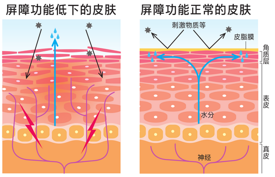 角质层受损型:皮肤角质层变薄,毛细血管位置表浅,容易出现红血丝。