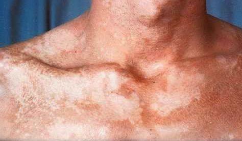 花斑癣是一种浅部真菌病,皮肤损害以淡白色为主,呈圆形或卵圆形斑,边缘模糊,表面往往有许多微细的鳞屑,有折光性,可直接通过镜检找到真菌,发病部位以皮脂腺发达部位多见,如颈、上胸、背部与上肢。部分患者损害沿毛囊分布,类似毛囊丘疹,扁平,微微高出皮面,上覆鳞屑,反光性强,少数患者皮损呈斑片状,数目较少,仅一至数片,但面积较大,表面鳞屑较厚,多呈深棕或棕褐色,少数为淡色斑,有时皮损面积如此之大以至误将皮损视为正常皮肤。